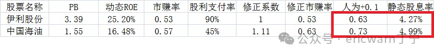 去年四季度伊利大额计提,所以今年上半年属于困境反转初期。上半年的ROE为12.60%,所以全年的动态ROE则为25.20%。本周收盘,伊利股份的市净率为3.39PB。运用市赚率第二公式计算,伊利的市赚率=3.39/25.20%/25.20%/100=0.53PR。由于股利支付率高达90%,所以修正市赚率也是0.53PR。不得不说的是,因为年底的多种因素,所以很多企业的Q4业绩都会明显不如前三季度平均值。有鉴于此,可以人为+0.1PR进行模糊正确的估值。也就是说,伊利目前的真实估值更可能是0.63PR。需要注意的是,如果三季度业绩低于预期,那么上述估值假设就不再成立了。