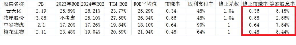 2021年开始,梅花生物进入到景气周期。最近一年,ROE跌到了21%左右。今年上半年同比微增,所以多年平均ROE,仍然是21%左右。运用市赚率第二公式计算,估值约为0.48PR。股利支付率高达64%,所以修正市赚率也为0.48PR。但是由于意外取消了中报分红,所以只知道静态股息率为5.44%,但却无法预估动态股息率!