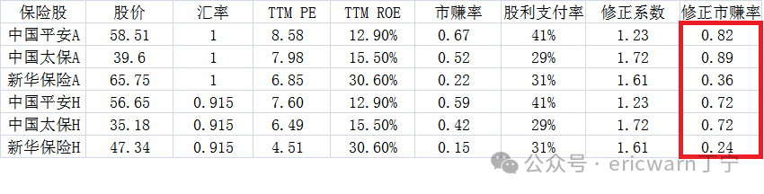 去年的时候,保险业还是困境反转股。现如今,困境反转已经成功了。所以采用TTM PE搭配TTM ROE,对其进行估值即可!值得注意的是,保险股的分红策略通常都是以丰补歉、平滑处理。所以股利支付率和修正系数,最好采用多年平均值更为稳妥。细心的读者看一眼估值表即可发现:新华保险AH在同行业里几乎是一枝独秀,市赚率和股息率均是最优。0.36PR和0.24PR的估值,至少还有3倍4倍涨幅?实际上,新华保险之所以一枝独秀,是因为在投资端更为激进,再加上分红不抠,所以才会如此。这个时候,买卖操作不妨参考行业龙头中国平安AH。行业龙头高估之后,越涨越卖所有保险股就比较稳妥了。根据回测来看,把行业龙头作为买卖参考,在历次牛市逃顶时,大概率有效!