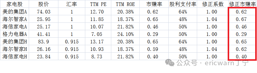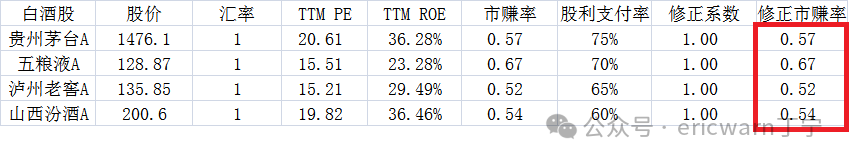 细心的读者可以发现,市赚率非常适用于ROE稳定且分红慷慨的价值股,但分红略抠的价值股却不太好用。针对分红略抠的股票,我又以50%股利支付率作为标杆,加入了修正系数N(PR=N*PE/ROE/100)。股利支付率≥50%的企业,修正系数为1.0(50%除以50%);股利支付率≤25%的企业,修正系数为2.0(50%除以25%);50%>股利支付率>25%的企业,例如30%的银行股,修正系数为1.67(50%除以30%)。如需贴近企业现状,则可采用TTM PE搭配TTM ROE进行估值。