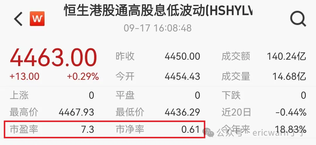 今日收盘,Wind金融终端显示,港股红利低波ETF(520550.SH)的市盈率为7.3PE,ROE为8.36%(0.61PB除以7.3PE),市赚率=7.3/8.36%/100=0.87PR,也就是8折多些不到9折。虽然市赚率估值略贵,但股息率却高达6%左右!