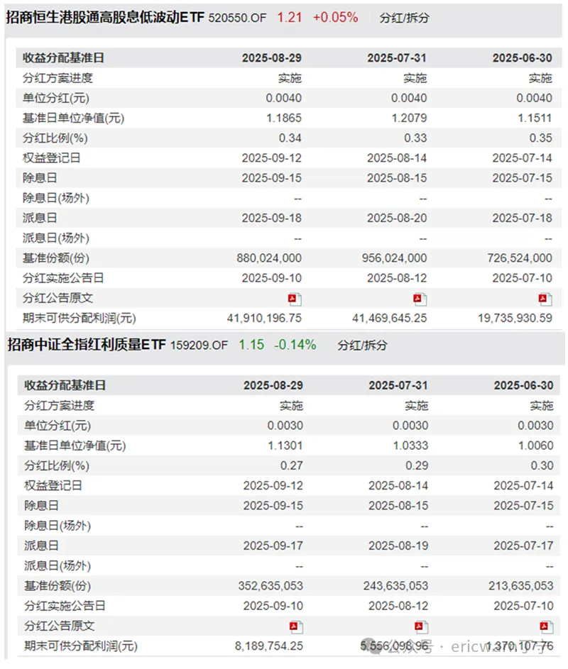 值得注意的是,红利作为适合长期持有的品种,优质的指数是第一层面,ETF层面的设计也尤为重要!中证红利质量ETF(159209.SZ)和港股红利低波ETF(520550.SH)在费率方面采用0.2%的市场最低档,最大限度节约了长期成本;在分红方面每月评估,目前看来月月领工资可以期待。这种可预期的、长期稳定的现金流,对长期持有体验至关重要。