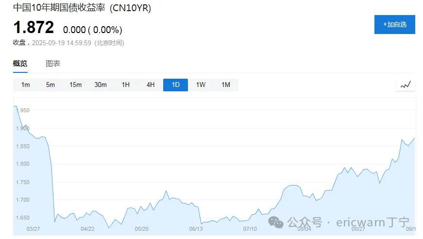 上周收盘,中国10年期国债收益率为1.872%。去掉6%的增值税之后,税后收益率大概是1.76%。至于银行一年期定存利率,则已全面跌破1%。这也意味着,国内正式进入到了低利率时代。