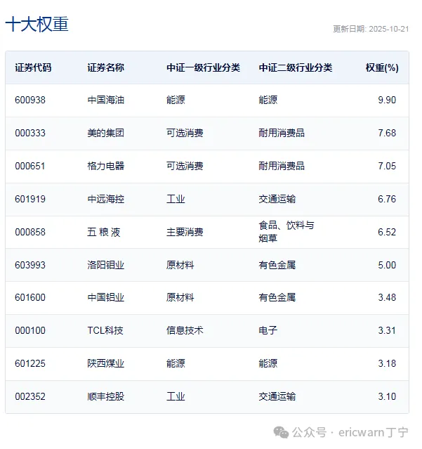 仔细观察便可发现,中证现金流只考虑了过去一年数据,而并非像市赚率第二公式那样考虑多年ROE平均值,这就是一个明显缺陷。也正是因此,中证现金流的十大权重里,正处于景气阶段的周期股占据了半壁江山。