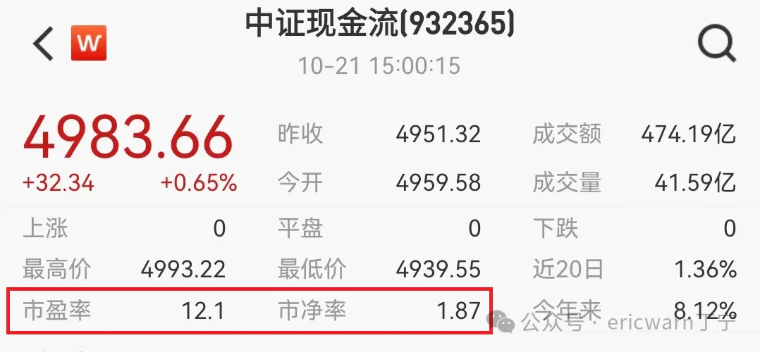 今日收盘,中证现金流(932365)的市盈率为12.1PE,市净率为1.87PB。市赚率=PE*PE/PB/100=12.1*12.1/1.87/100=0.78PR,相当于不到8折。