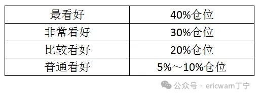 学习巴菲特的仓位管理,买入策略其实很简单。股东信里曾说过多次,即便是最看好的股票,仓位占比也不会超过40%。这就意味着,看好级别与仓位配比应该保持正相关。如果只是普通看好,仓位占比最多也就5%~10%。很多投资者会因为越跌越买,把普通看好的股票抄底抄成了超级重仓。从巴菲特视角来看,肯定是错的。