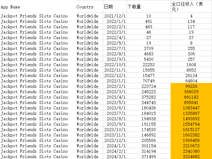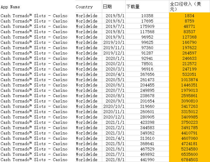 1、Cash Tornado™ Slots - Casino。 从0开始到月678万美元流水,仅用了2年3个月。现在流水依然很好。从2020/3月以后,月流水环比高速增长,连续上几个平台。 月流水20-50万是个起跳点。