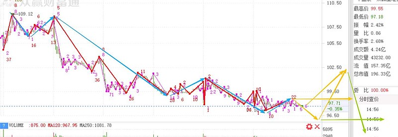 2026.1.29 大5分钟级别B段下跌在早盘直接冲高到100.75结束掉了,但是也直接往下破位走出C段下跌,然而又转折向上突破100.75把下跌C段结束了,如果明天不跌破97.96,那C段下跌就结束了,如果跌破97.96,今天的早盘只能视为一个下跌的扩展中枢,然后行情进入大5分钟级别的C段下跌。按这个下跌力度,我觉得跌破88那个低点的可能性还是有的,所以还是要谨慎处理,等行情往上突破101.14时再加仓看多,或者等走出D段下跌时再逢低加仓。因为跌破88.64的话,行情又充满了不确定性(有很大可能弱反弹后继续往下阴跌)中枢比较不方便细讲,简单来说就是在一个区间内震荡,然后同时突破区间高点跟区间低点,就叫扩展中枢。能理解的理解,不能理解的就算了,把他当做一个假跌破跟假突破就行。