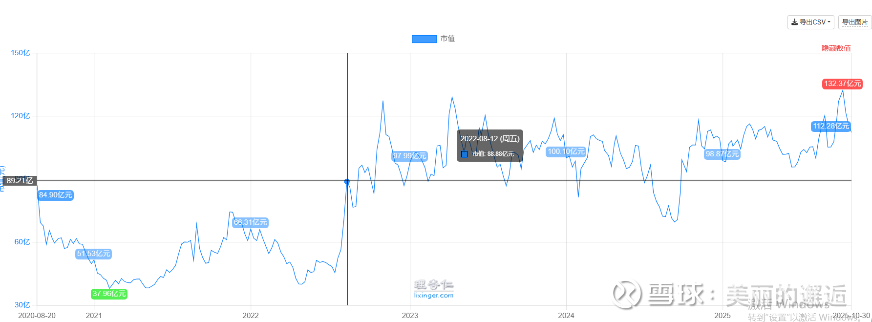 2022年8月至今,市值低于90亿上的时间占比很短。