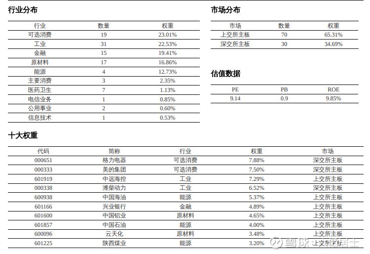 价值100中,可选消费、工业、金融、原材料和能源为主要行业,5大行业占比超90%,尤应注意的是可选消费占比高达23.01%,为第一行业占比,颇为少见。