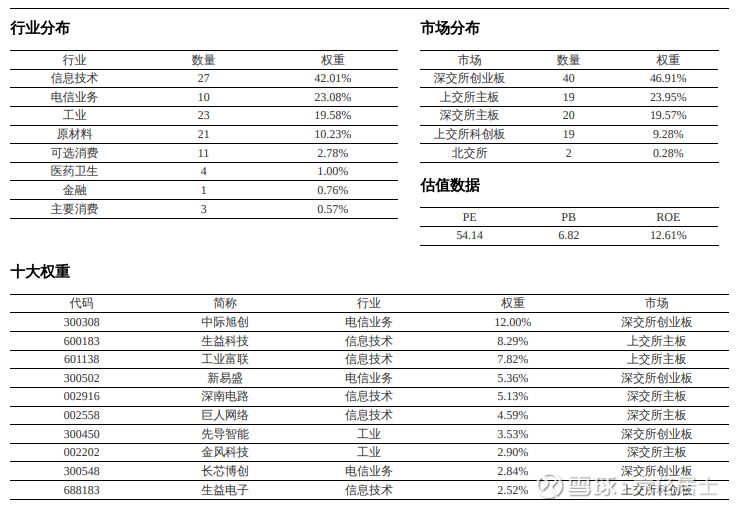 3)行业分布与十大权重