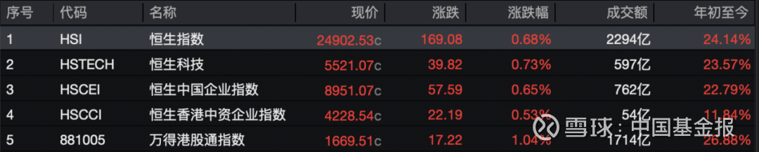 8月5日,港股三大指数延续强势走势。截至收盘,恒生指数涨0.68%,报24902.53点,恒生中国企业指数涨0.65%,恒生科技指数涨0.73%。全日大市成交额为2294亿港元,较前一交易日略有缩量。南向资金“杀回马枪”,净流入234.26亿港元。前一交易日,南向资金净流出180.92亿港元。