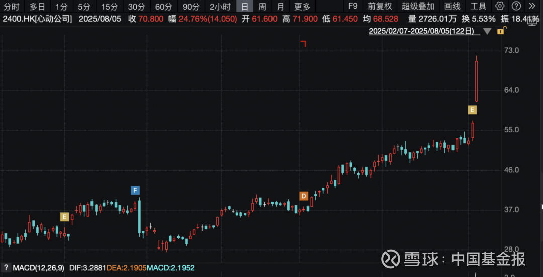 8月5日,心动公司开盘大涨,盘中涨幅超26%,股价一度刷新2021年初以来的纪录,收涨24.76%,成交额为18.68亿港元。