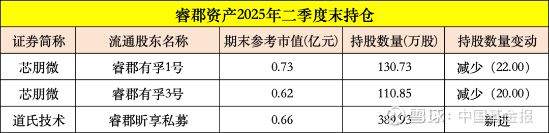 睿郡资产二季度还新买进了道氏技术389.93万股,期末持有市值为6600万元。