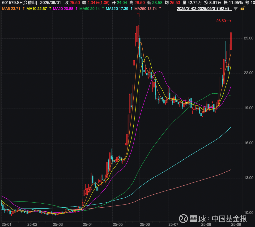 会稽山今年以来涨超134%