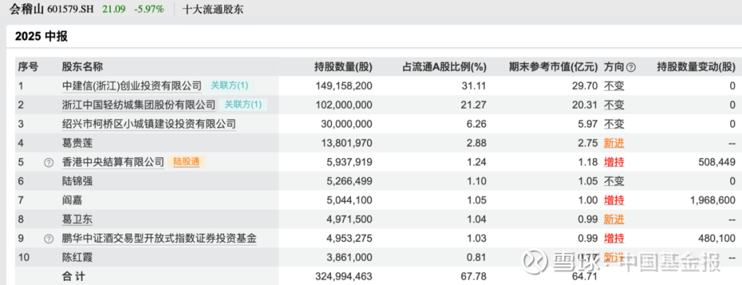 半年报显示,二季度末,葛卫东以个人名义现身会稽山的股东名单,持有497.15万股,期末参考市值为9900万元,为第八大流通股东;同时葛贵莲也成为新晋前十大流通股东,位列第四名,持有1380.20万股,期末参考市值为2.75亿元。两人合计持股市值为3.74亿元。