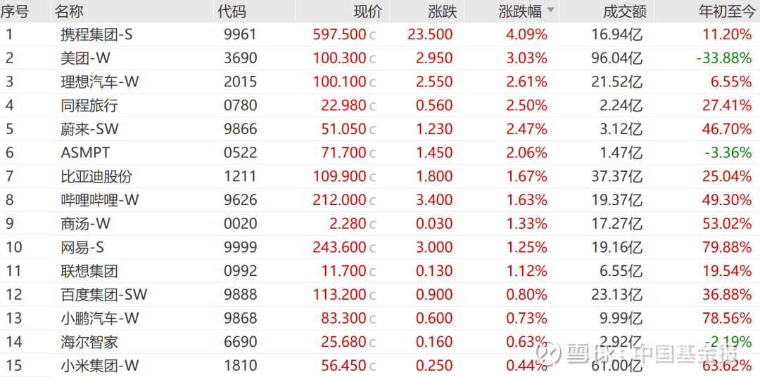 科网股延续升势,携程集团涨超4.09%,美团反弹3.03%。机器人概念股表现强势,三花智控涨12.83%,创上市以来新高。