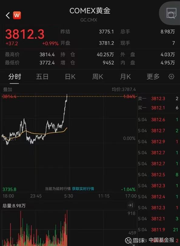 9月23日,国际金价再度大涨。目前,COMEX黄金点位处于3800美元/盎司上方。