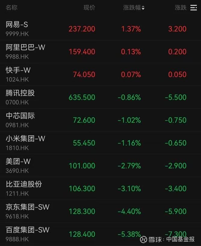 大型科网股涨少跌多