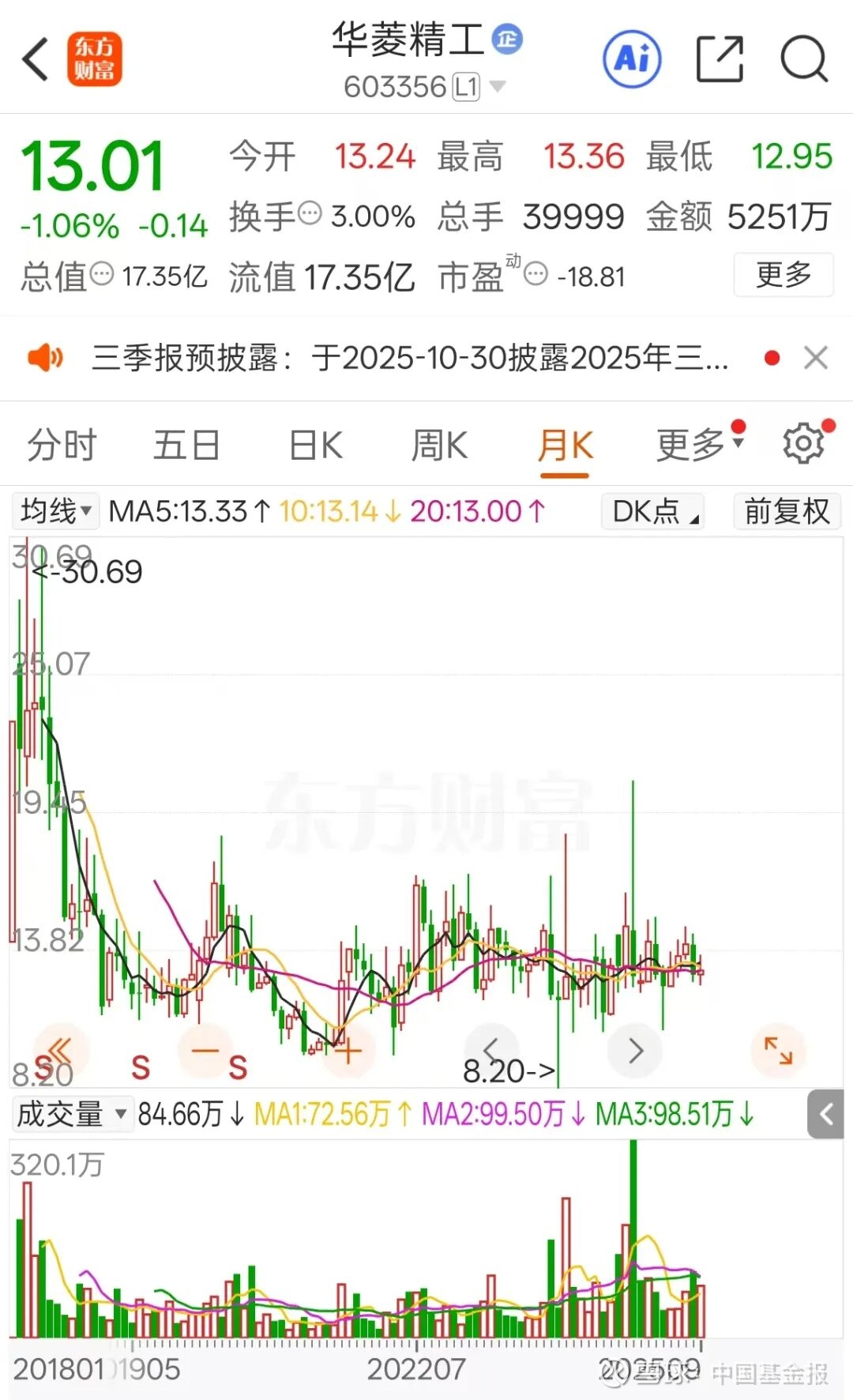 截至9月27日收盘,华菱精工的市值为17.35亿元。