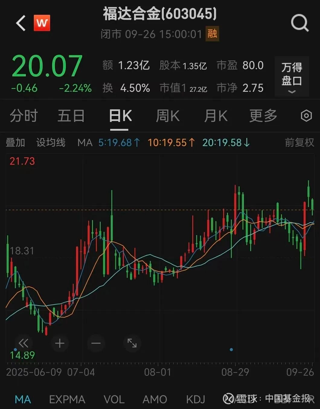 截至9月26日收盘,福达合金股价报20.07元/股,总市值超27亿元。