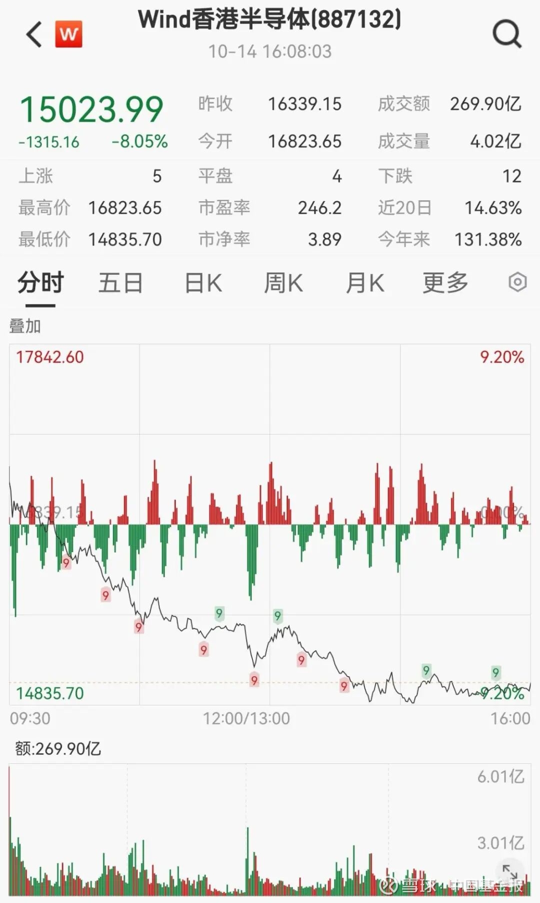 半导体行业明显回调。Wind香港半导体板块指数一度大跌9.20%,收盘跌8.05%。