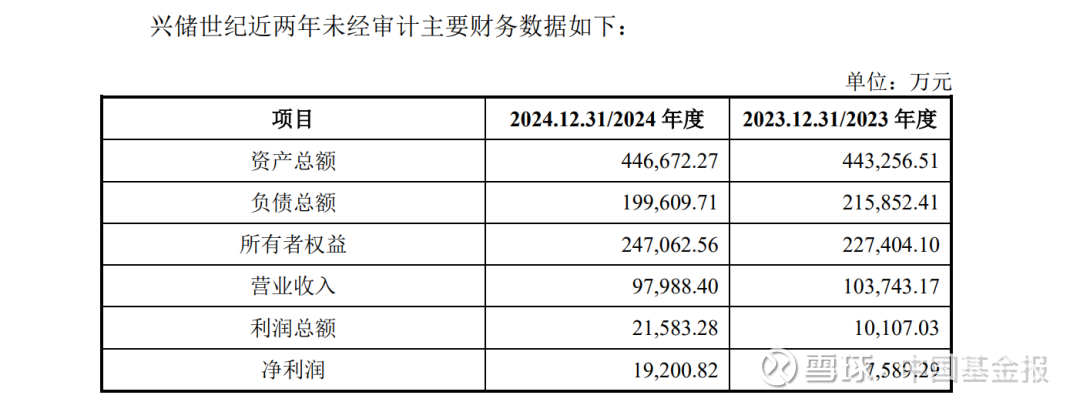 2023年、2024年,兴储世纪营收分别为10.37亿元、9.80亿元,净利润分别为7589.29万元、1.92亿元。