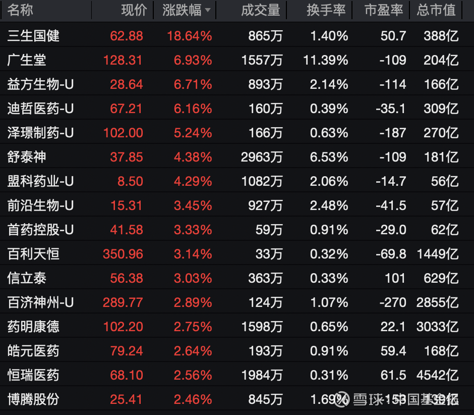 创新药板块走强,三生国健涨超18%,广生堂、益方生物、舒泰神等跟涨。