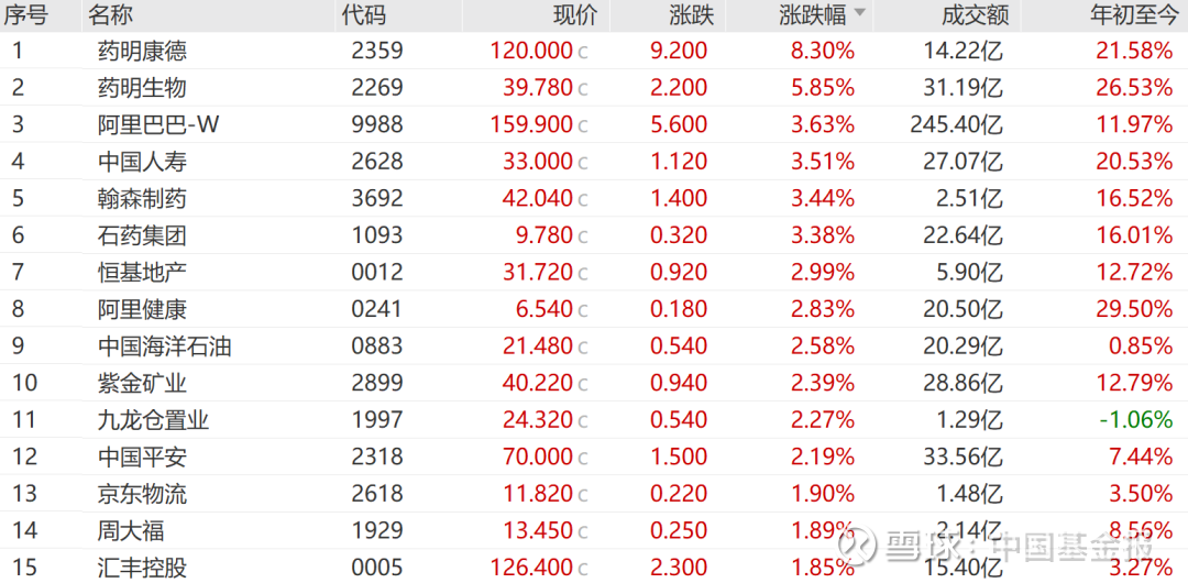 成交额突出个股方面,阿里巴巴成交额达245.40亿港元,上涨3.6%;腾讯控股成交额达152.24亿港元,微涨0.7%;小米集团成交额为80.31亿港元,下跌2.0%。