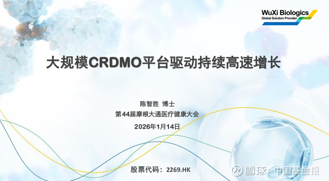 1月11日,药明生物发布公告称,公司将于1月14日(美国太平洋时间)出席第44届年度摩根大通医疗健康大会,会上将进行包含公司业务营运的若干信息的简报。