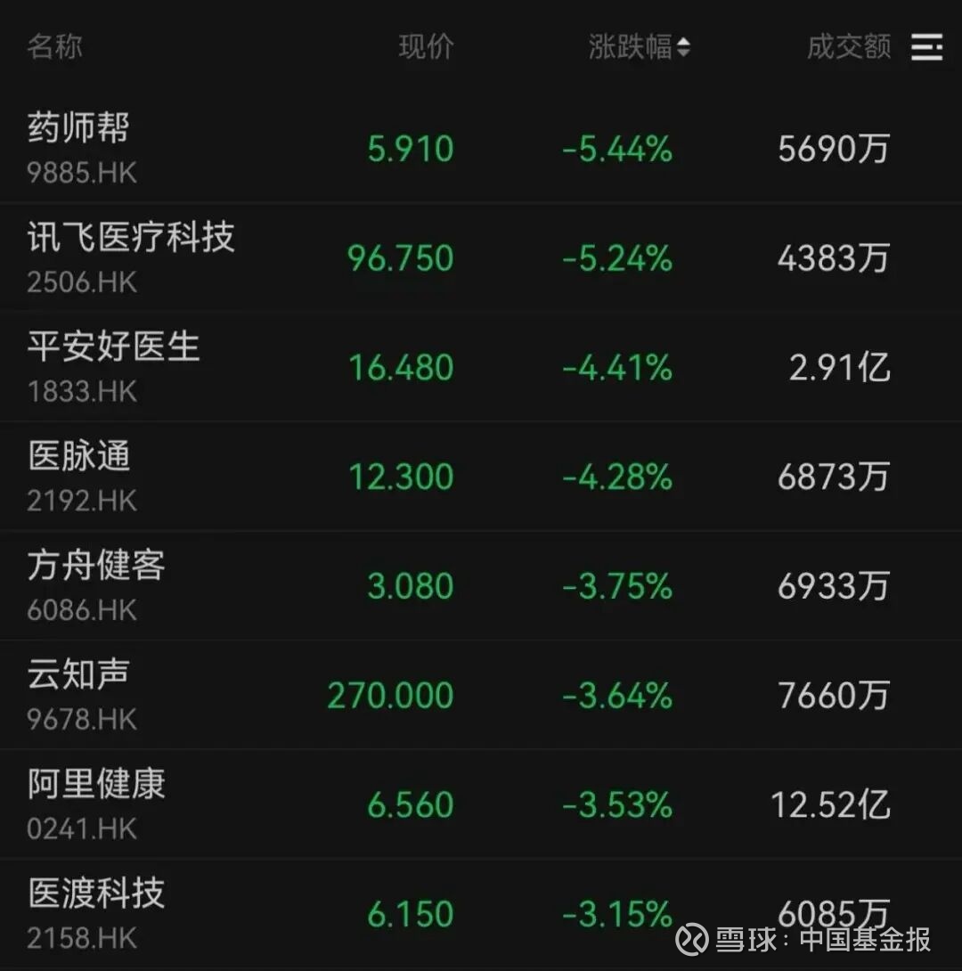互联网医疗与AI应用股今日同步走低。药师帮、平安好医生、阿里健康分别下跌5.44%、4.41%、3.53%;MINIMAX-WP、汇量科技、智谱均跌超10%。