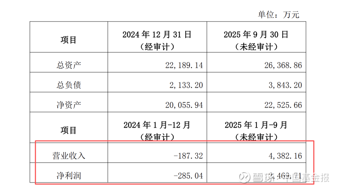 财务数据方面,锦弘劭晖在2024年处于亏损状态,但在2025年前三季度实现了盈利。2024年,公司营业收入为-187.32万元,净利润为-285.04万元。而截至2025年9月30日,公司营业收入达到4382.16万元,净利润为2469.71万元。