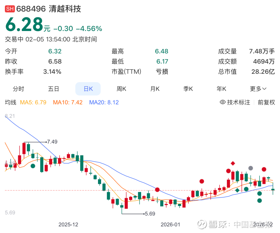 清越科技是一家致力于物联网终端显示整体解决方案的供应商。2月5日,清越科技股价出现下跌,截至发稿,报6.28元/股,跌幅超4.5%。