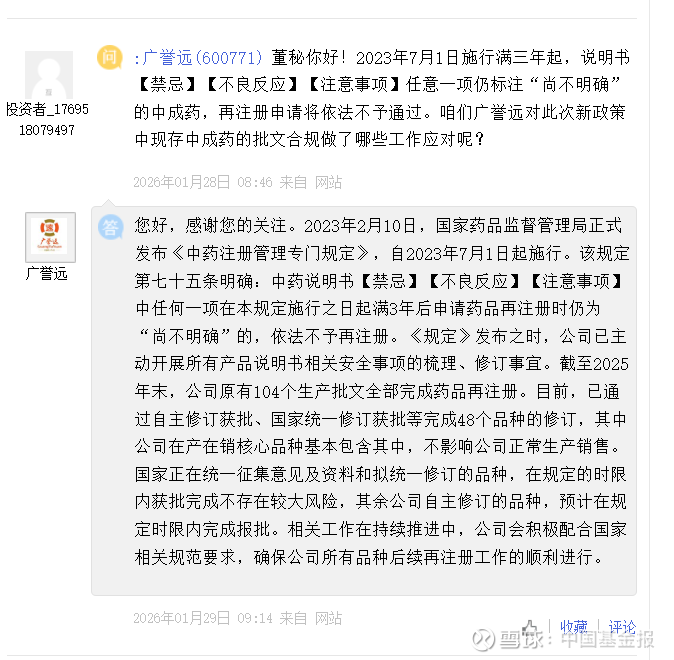 此外,在投资者互动平台,广誉远也进行了回复:“国家正在统一征集意见及资料和拟统一修订的品种,在规定的时限内获批完成不存在较大风险,其余公司自主修订的品种,预计在规定时限内完成报批。”
