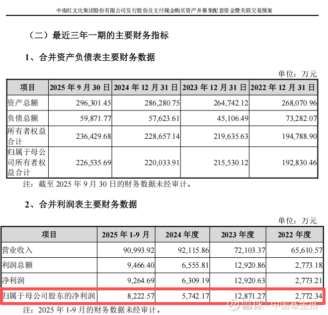 2022年至2024年及2025年前三季度,中南文化的归母净利润分别为2772.34万元、1.29亿元、5742.17万元及8222.57万元。