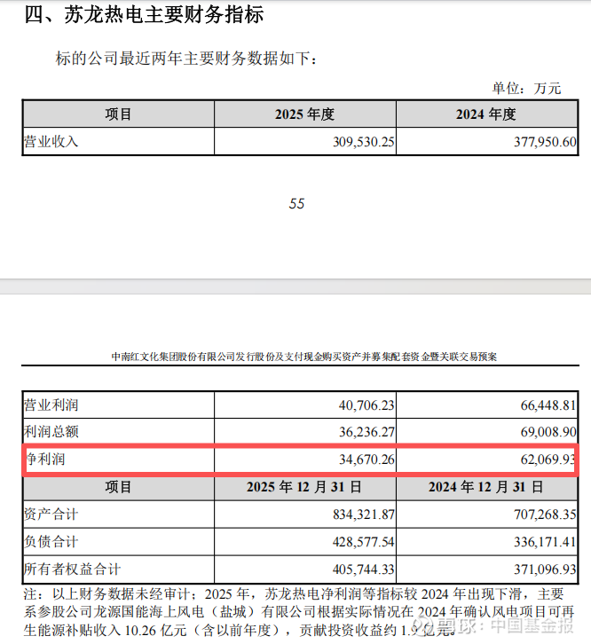 交易预案显示,苏龙热电是优质的火电资产,但2025年的净利润同比下降。