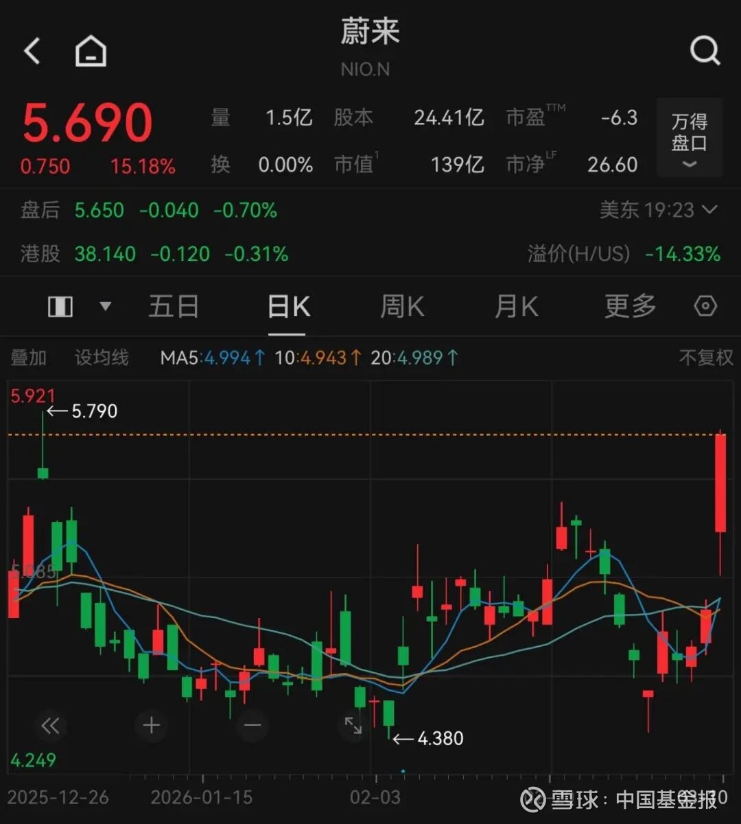 蔚来大涨超15%