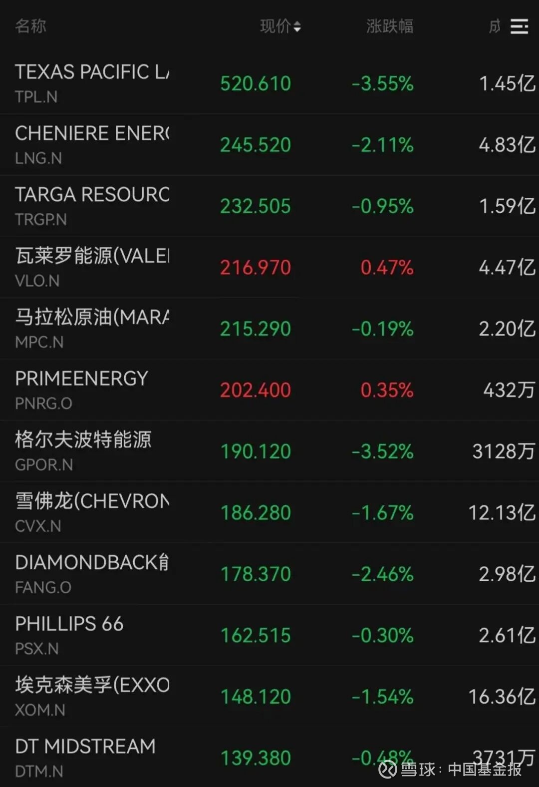 国际油价大幅震荡,石油股回调。TEXAS PACIFIC下跌3.55%,格尔夫波特能源下跌3.52%,DIAMONDBACK能源下跌2.46%。