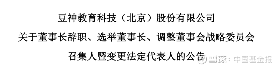 3月23日,豆神教育发布公告称,公司董事会于近日收到公司非独立董事、董事长窦昕的书面辞职报告。因工作安排调整,窦昕申请辞去公司第六届董事会非独立董事、董事长职务,亦不再担任公司第六届董事会战略委员会主任委员。