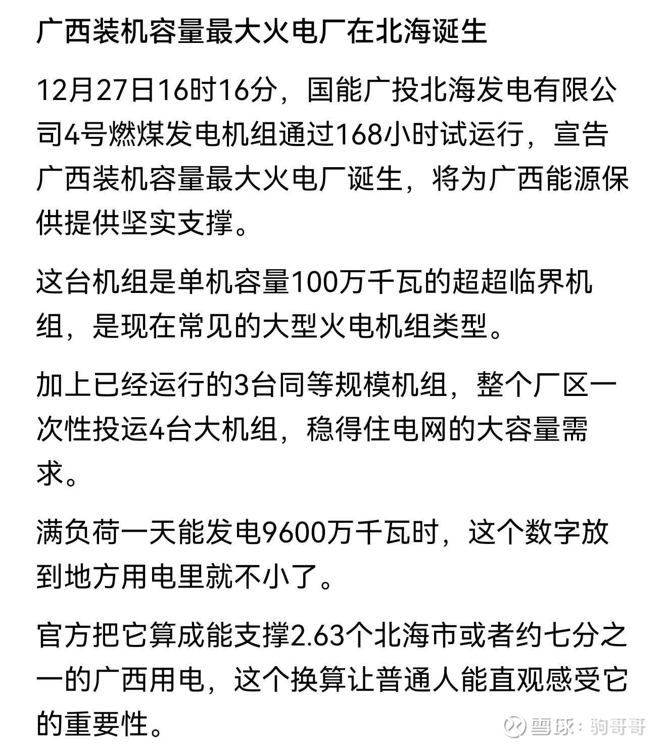 这些项目直接并入自有桂东电网进行售电利润率高(贺州煤电厂属于南方电网统筹调度)。 广西能源第二个资产主要集中在北部湾港区:国能广投北海电厂30%股权(25年9月上市用国海证券股权进行置换,股东大会通过,正在做最后交割)。这个电厂非常优质,随着25年11月底,12月底随着3.4号最新灵活调峰火电厂并网,已经成为广西最强最大单体调峰电热火电厂。