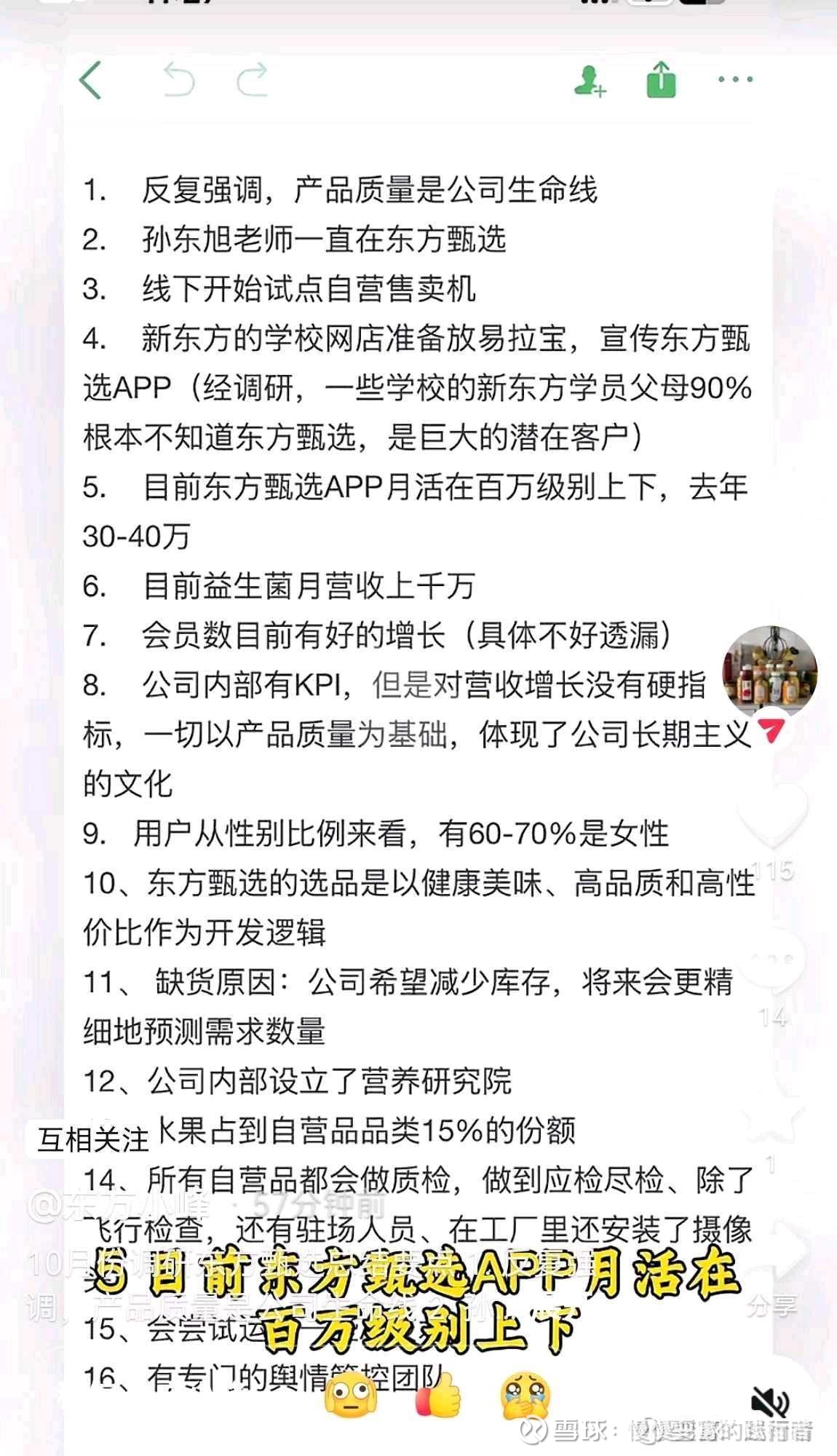 这是几个东方甄选的投资者总结这次交流会的内容,我感觉已经非常全面,非常好。
