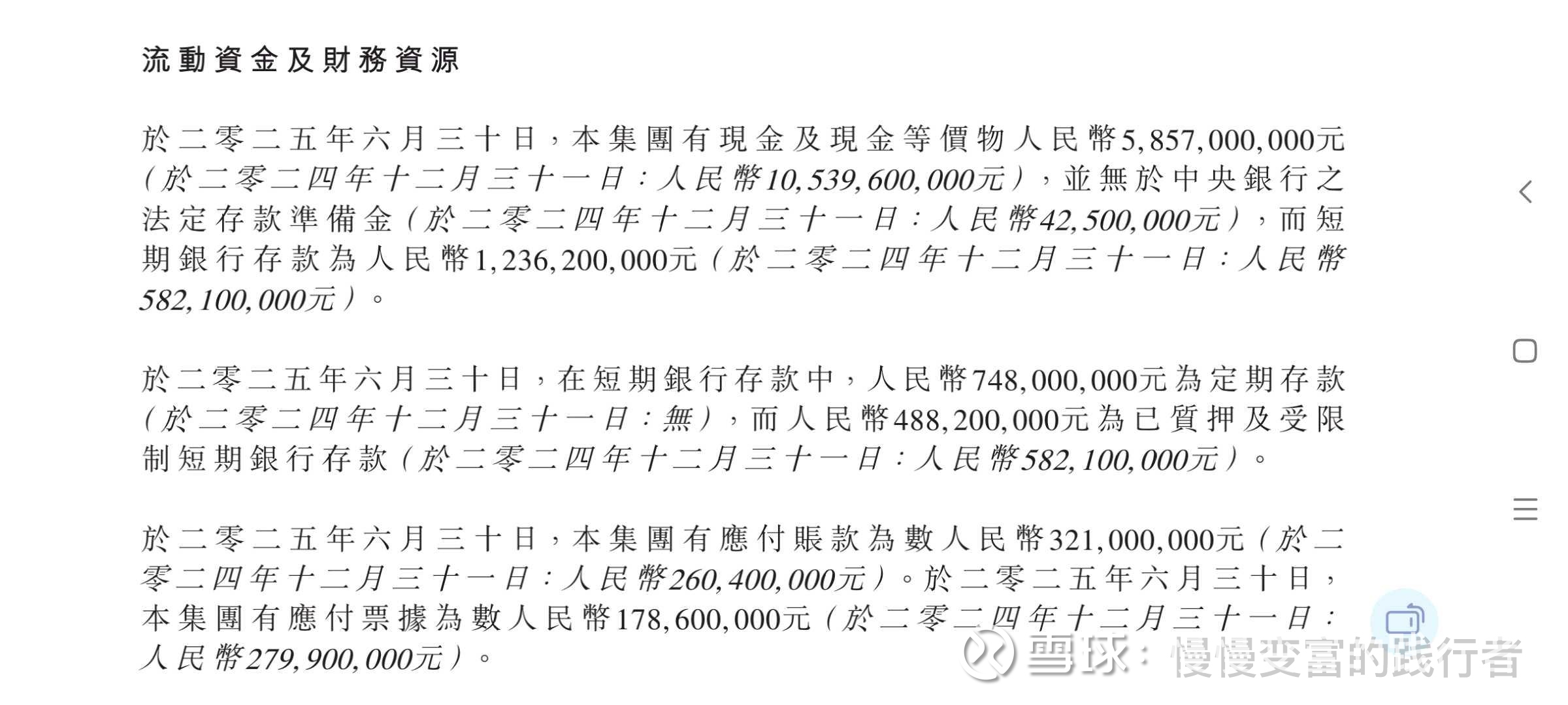 2025年6月31号,账上58.57亿的现金及现金等价物。