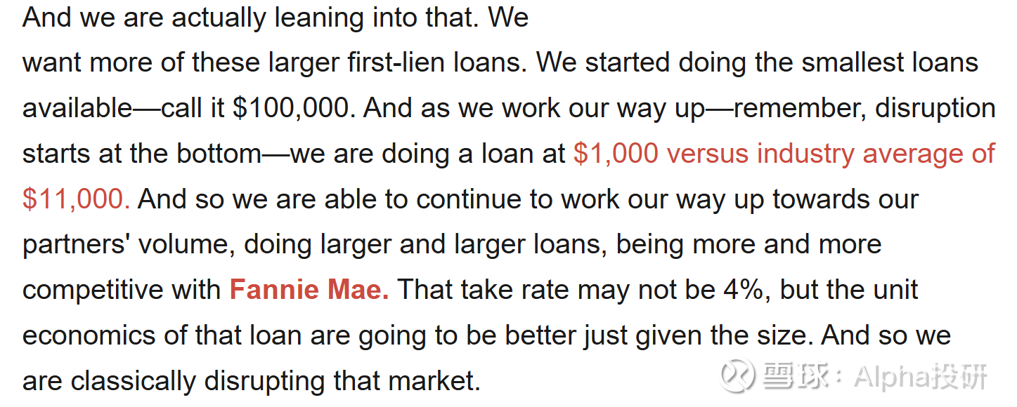 接着,CEO抛出了一段最有想象力的话“我们现在的产品和$房利美(FNMA)$ 相比越来越竞争力”。
