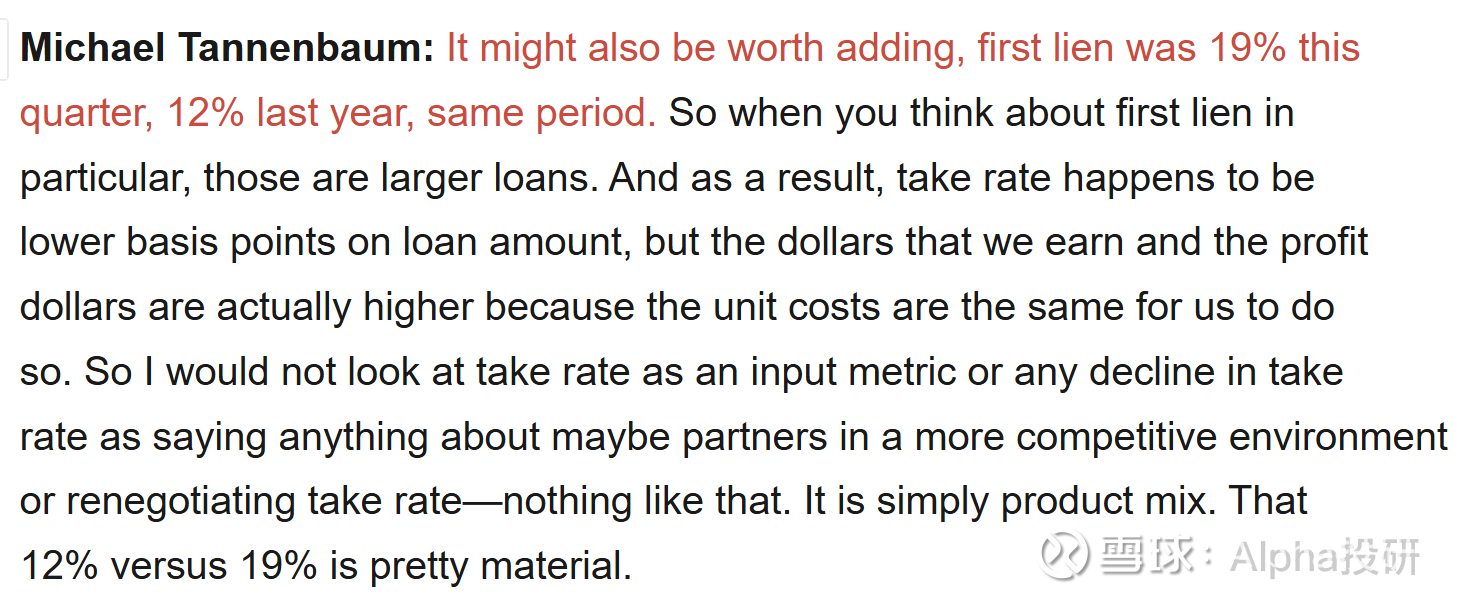 阿发在重读2025年Figure第四季度电话会议记录时,发现了一段有趣的话。CEO Michael Tannenbaum在谈到第一留置权抵押贷款(first-lien HELOC)时说道:这项贷款在25年第四季度已经占到总交易量的19%,而去年同期才12%。增长速度非常地块。见下图:
