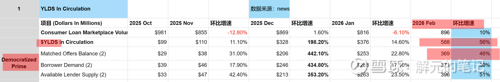 我们看一下26年2月份,YLDS和Democratized Prime的业务状况:
