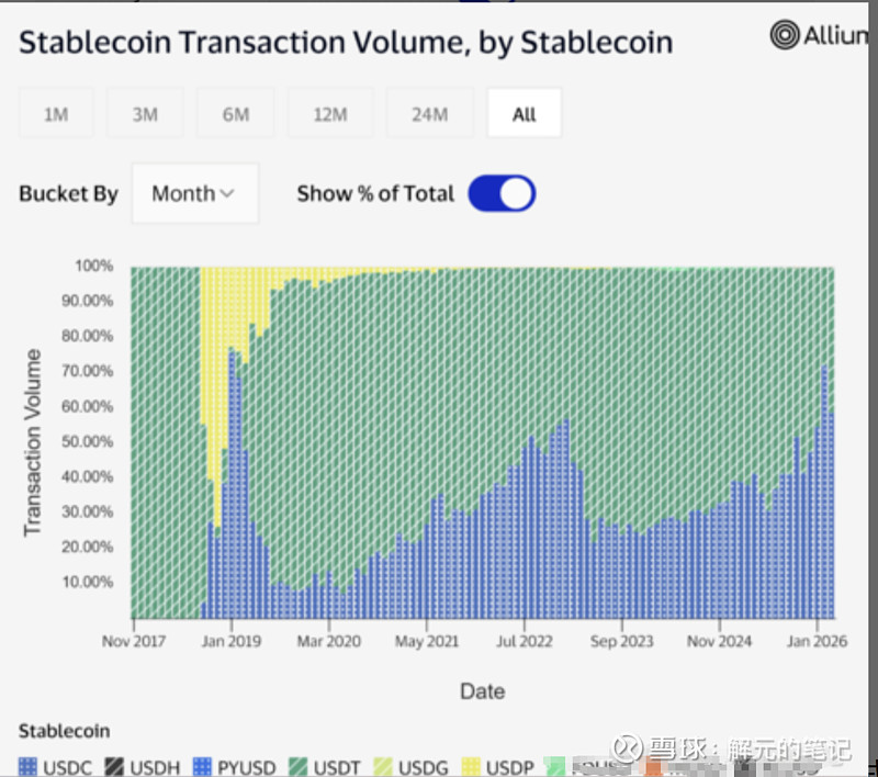 不一样的地方就是 circle的USDC 的交易量开始超过USDT