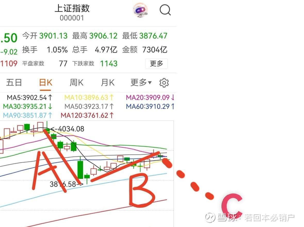 大盘处于3040反弹的4浪下跌调整之中,其中4浪下跌又分为ABC浪。