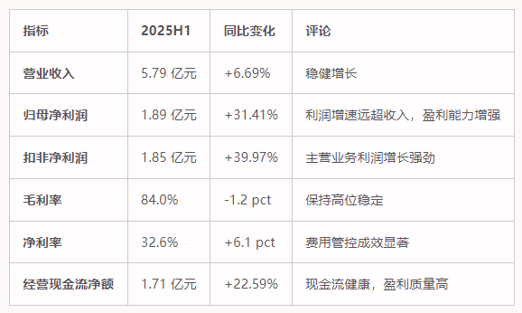 现金流健康度:经营性现金流非常健康。2025H1达1.71亿元,同比增长22.59%,持续为正且能轻松覆盖资本支出。