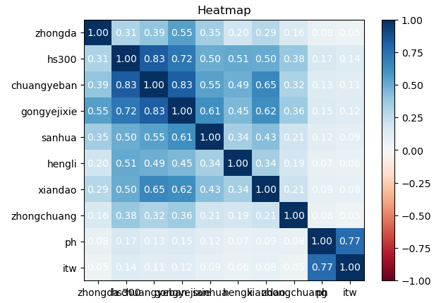 相关性表现还行,基本走自己的独立逻辑。(注:相关系数数值越低越好)