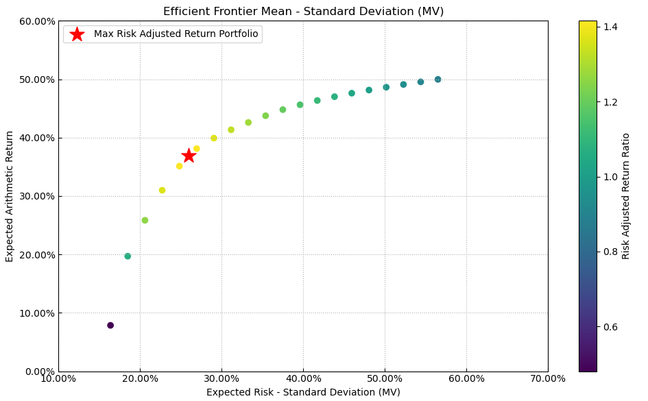 按最高夏普比率配置的话,系统给的权重为20.1%,最高权重给了美股的派克汉尼汾占比37.0%。(注:占比越高越好)